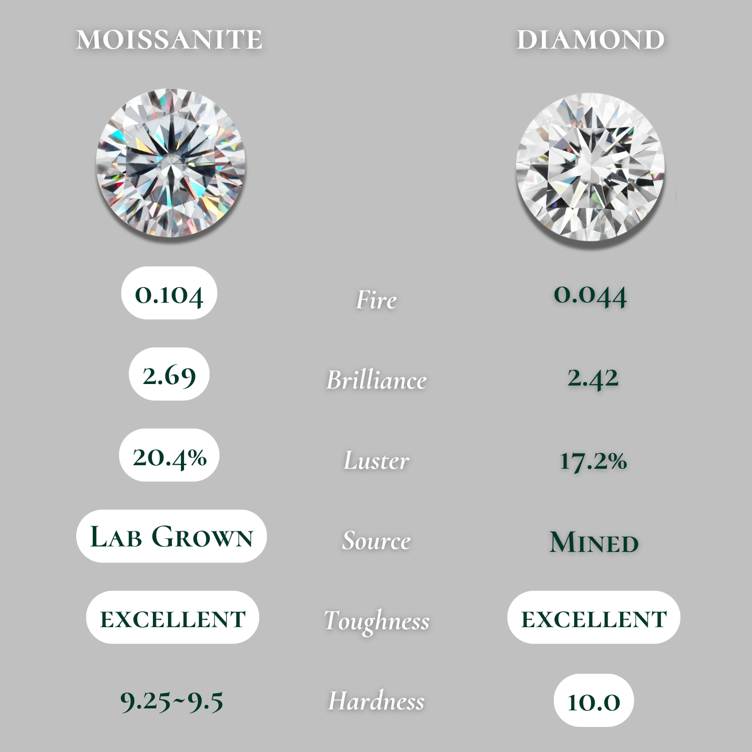 Choosing Moisfine's moissanite jewelry means embracing exceptional brilliance, unmatched value, and ethical sourcing. Moissanites shine brighter than diamonds, are more affordable, and are crafted in a sustainable, conflict-free way. With superior durability and unique beauty, our moissanites offer a modern, elegant alternative that stands out from the crowd. Opt for Moisfine and let your jewelry reflect your values and style.